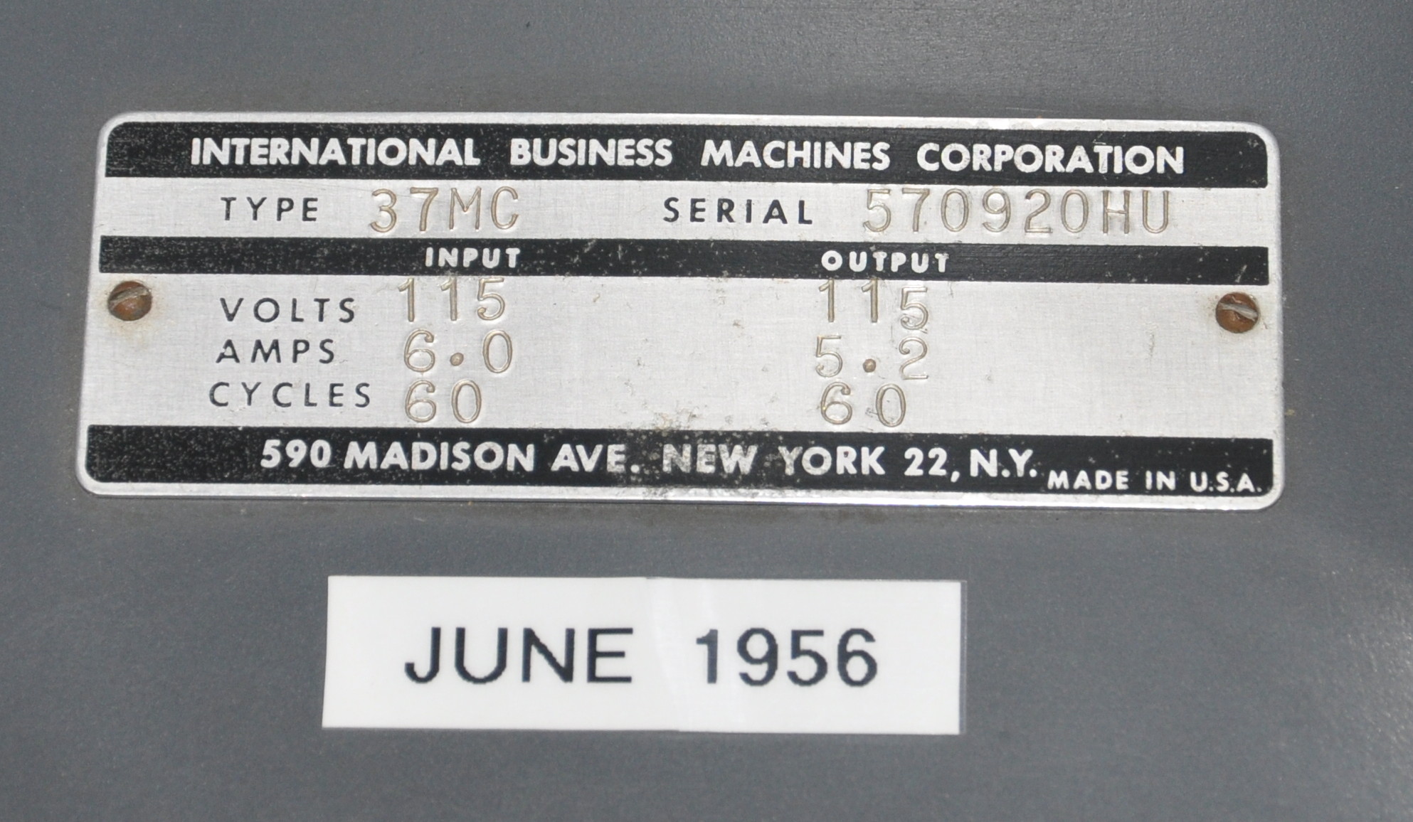 4/15/2020 10:32 AM 453170 IBM Radio Master Model 37 ID tag June 1956.JPG