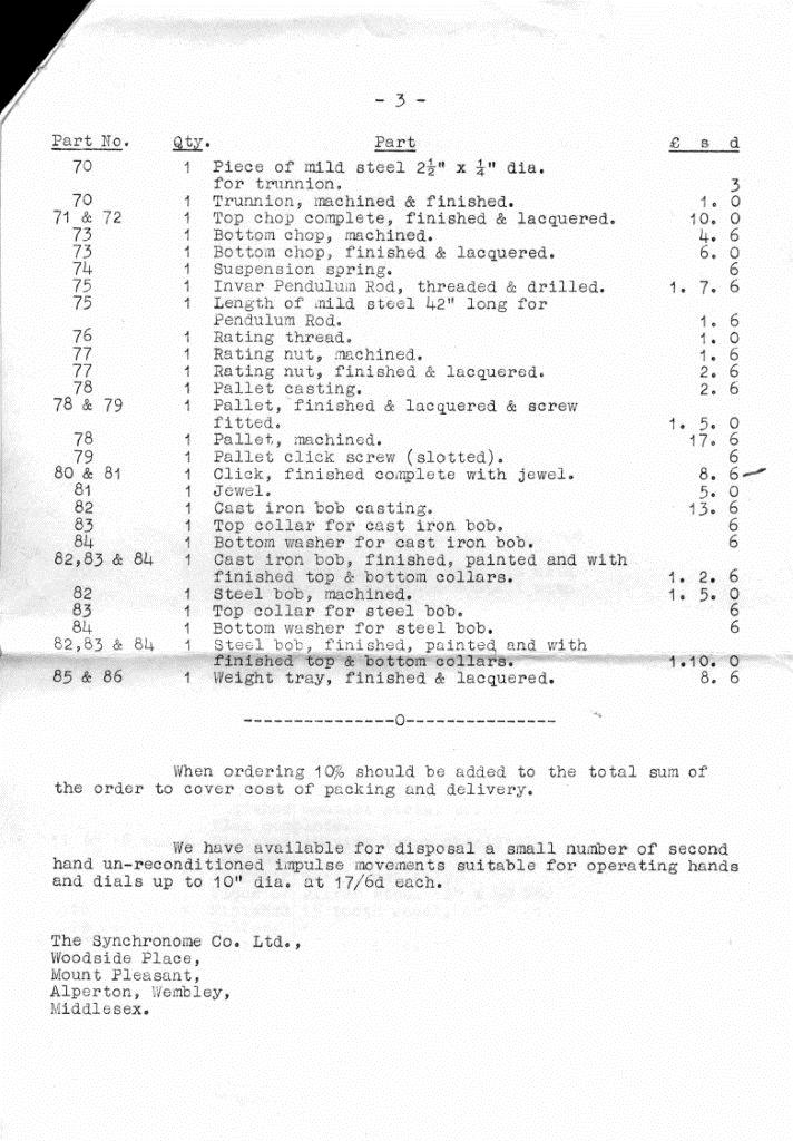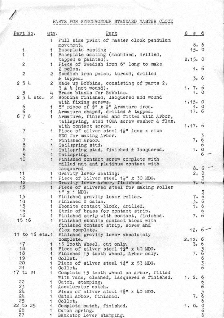 7/23/2020 11:34 AM 401083 Synchronome 1 sec master clock parts list and prices 1947.pdf