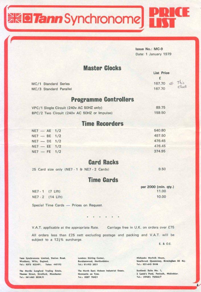 7/22/2020 9:36 PM 556281 Synchronome clock price list 1960.pdf